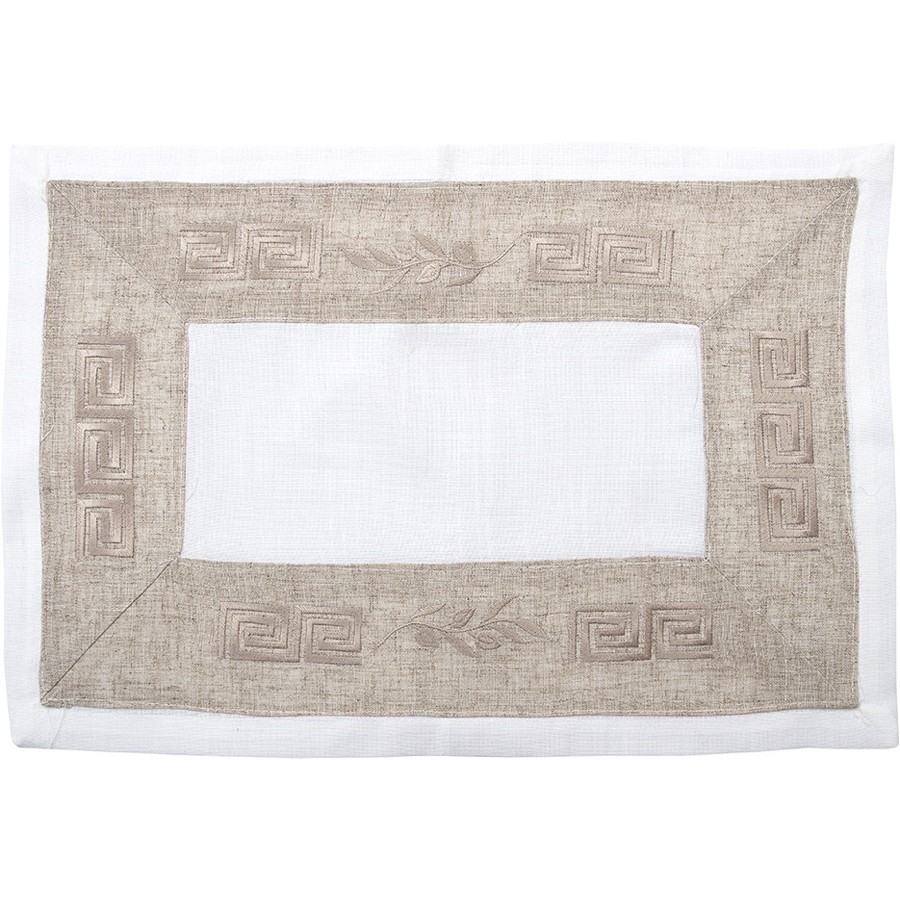 Σουπλά με εμφάνιση λινού και μπεζ φάσα με κλασσικό, παραδοσιακό κέντημα με μαιάνδρους.