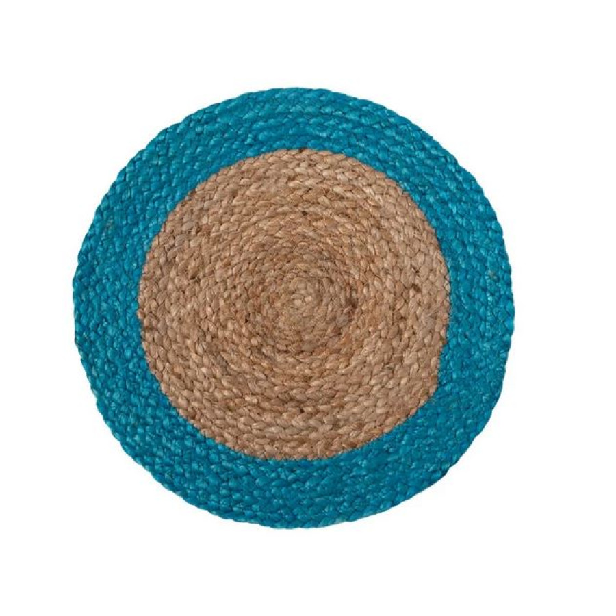 Σουπλά Στρογγυλό (Διάμετρος 38 εκ.) Γιούτα Δίχρωμο Newhome Jute Plain Natural/Τυρκουάζ