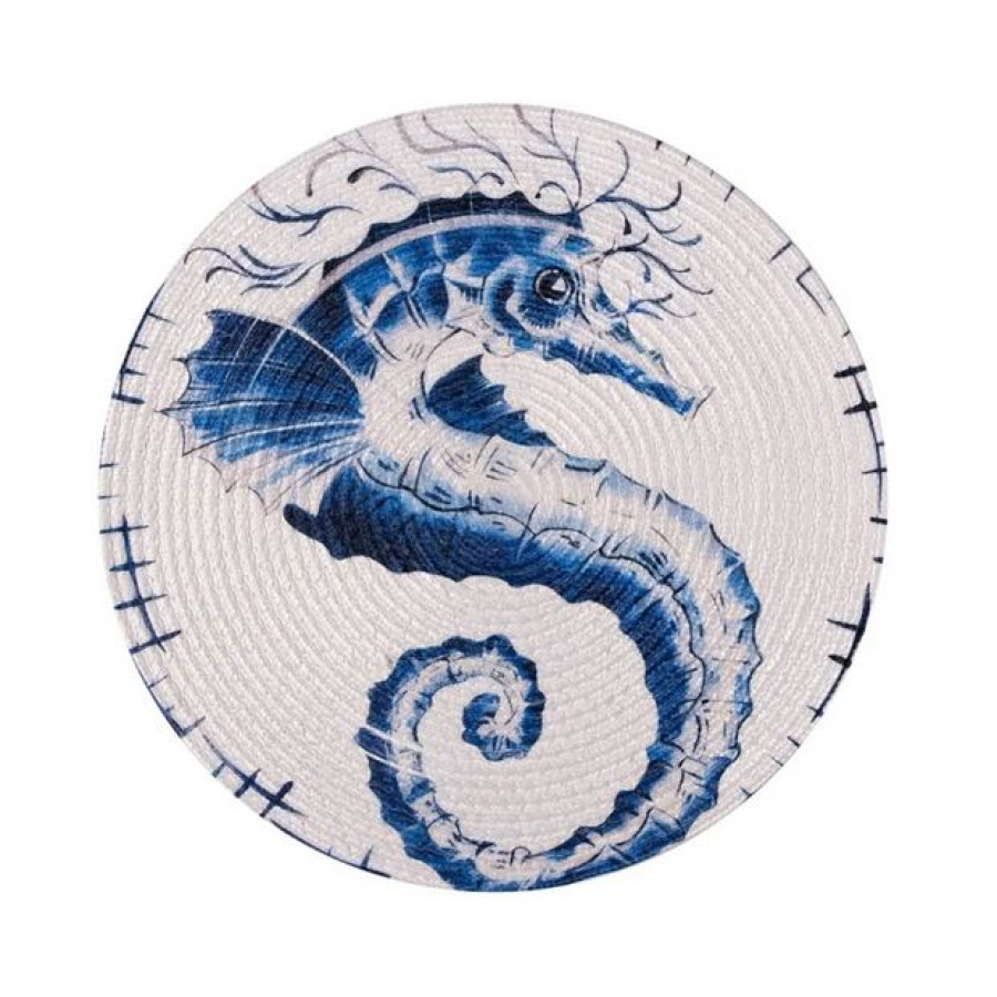 Σουπλά Στρογγυλό (Διάμετρος 38 εκ.) Βαμβακερό Newhome 2326 Μπλε Ιππόκαμπος