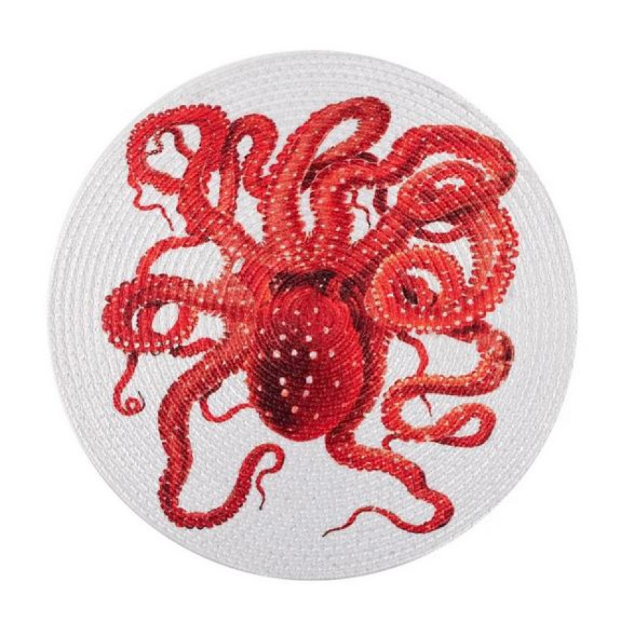 Σουπλά Στρογγυλό (Διάμετρος 38 εκ.) Βαμβακερό Newhome 2333 Κόκκινο Χταπόδι