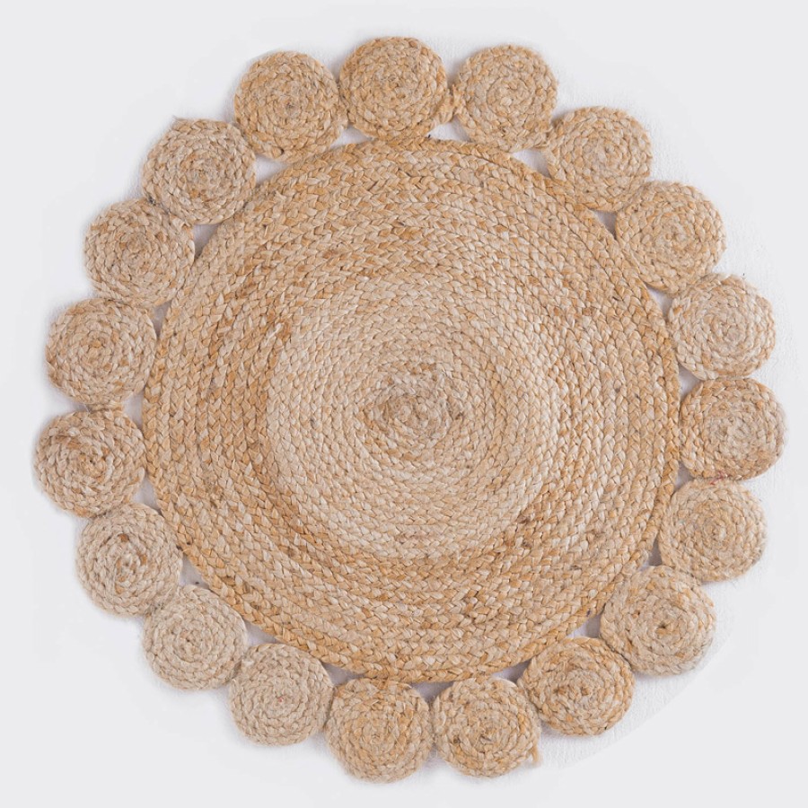 Στρογγυλό χαλάκι (Διαμ.70εκ) Φυσική Γιούτα Rythmos Rattan Flower Μπεζ