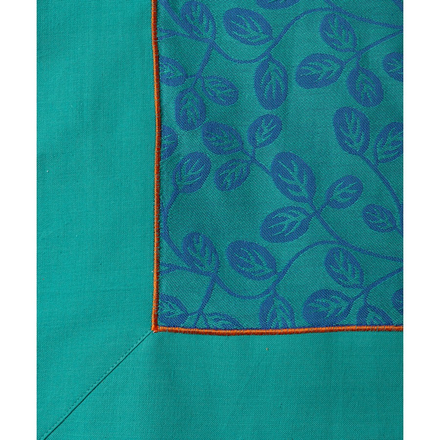 Τραπεζοκαρέ με ζακάρ φύλλα στην ύφανσή του και μονόχρωμη φάσα, σε ζωηρές αποχρώσεις.
