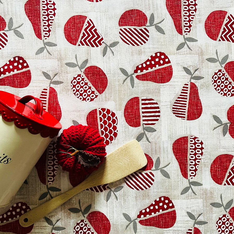 Τραπεζομάντηλο με σχέδιο μήλα.