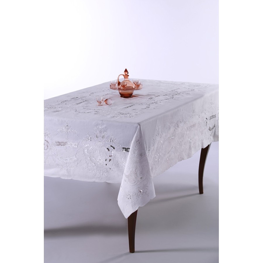 Τραπεζομάντηλο 8 ατόμων 170x220 με 8 πετσέτες φαγητού με κέντημα