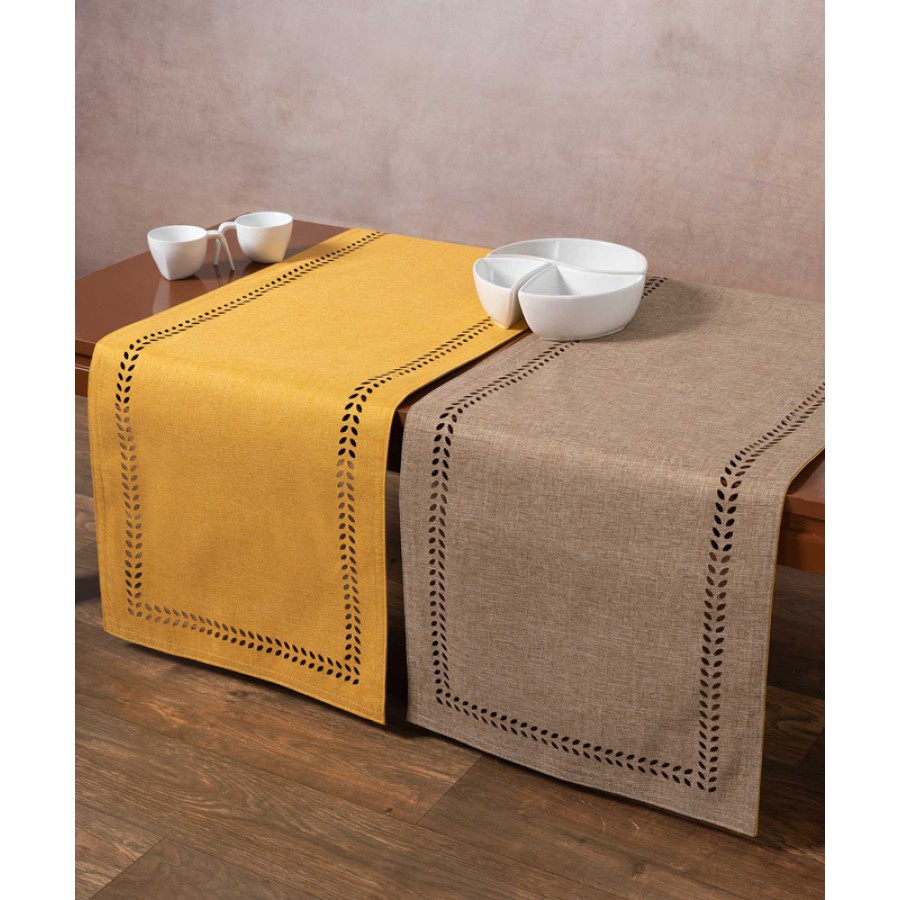 Τραβέρσα μονόχρωμη με λεπτομέρειες με κοφτό σχέδιο, σε πολλές επιλογές χρωμάτων.