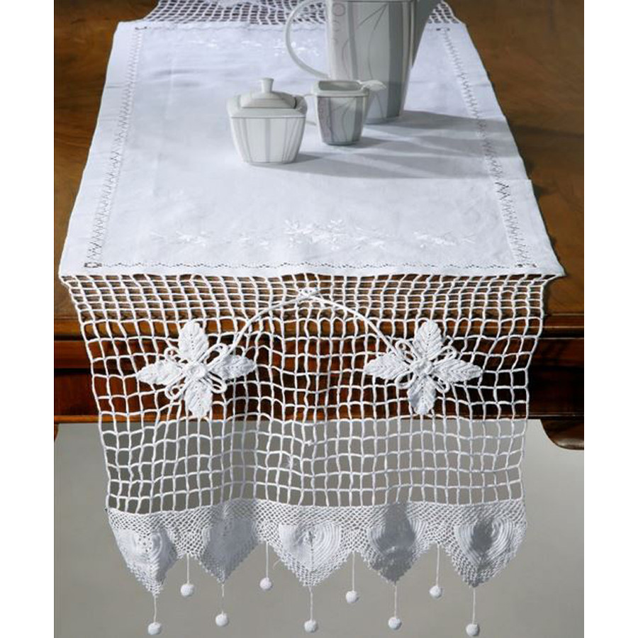 Τραβέρσα Λινή (50x200) Χειροποίητη με Ανεβατή δουλειά Newhome Ρουμάνικη Λευκή