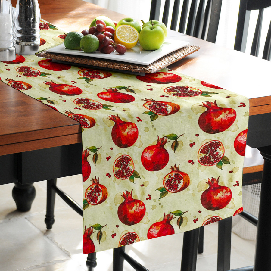 Τραβέρσα 45 Χ 180 με ψηφιακή εκτύπωση με ρόδια σε μπεζ φόντο.