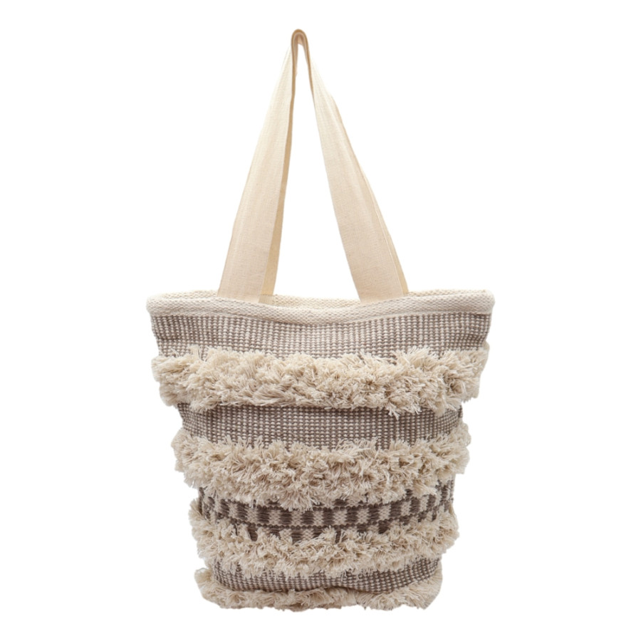 Ανακάλυψε μια κομψή τσάντα θαλάσσης με υφαντή υφή και διακριτικές boho λεπτομέρειες, που χαρίζουν φυσικό και καλοκαιρινό χαρακτήρα σε κάθε σου εμφάνιση. Ευρύχωρη και πρακτική, είναι ιδανική για να μεταφέρεις όλα τα απαραίτητα με στυλ και άνεση από την παραλία μέχρι τις καθημερινές σου βόλτες.