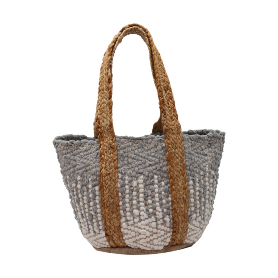 Τσάντα Παραλίας Κουρελού με πλεκτά χερούλια Γιούτα