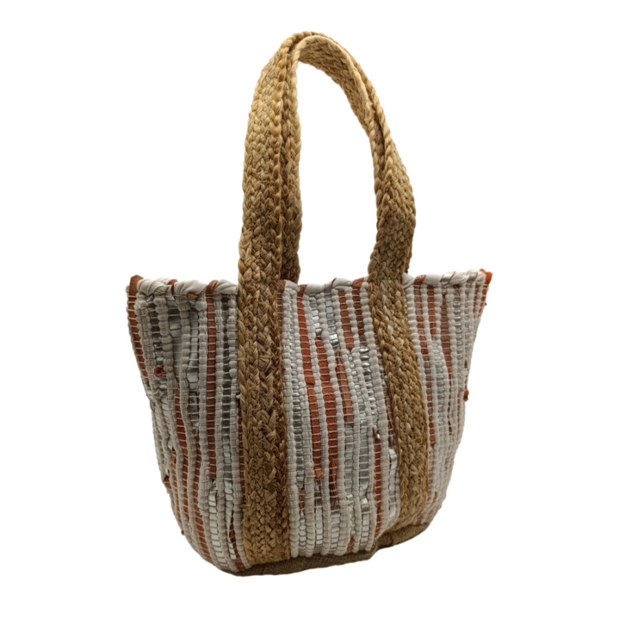 Τσάντα Παραλίας Κουρελού με πλεκτά χερούλια Γιούτα