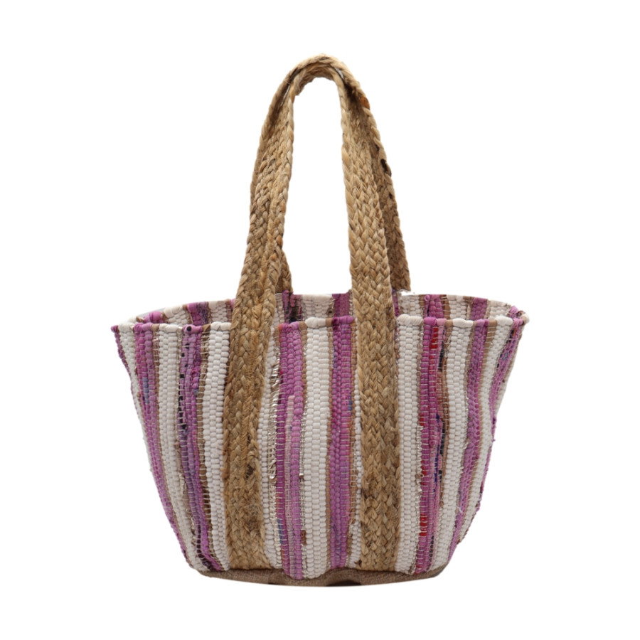 Τσάντα Παραλίας Κουρελού με πλεκτά χερούλια Γιούτα