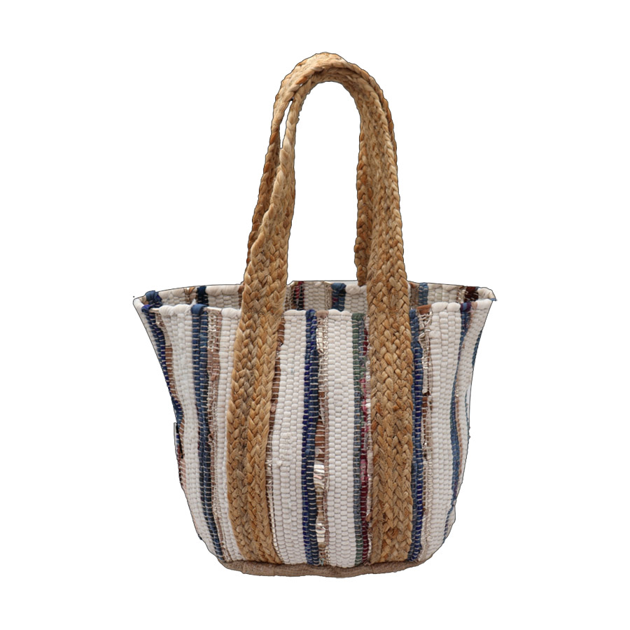 Τσάντα Παραλίας Κουρελού με πλεκτά χερούλια Γιούτα